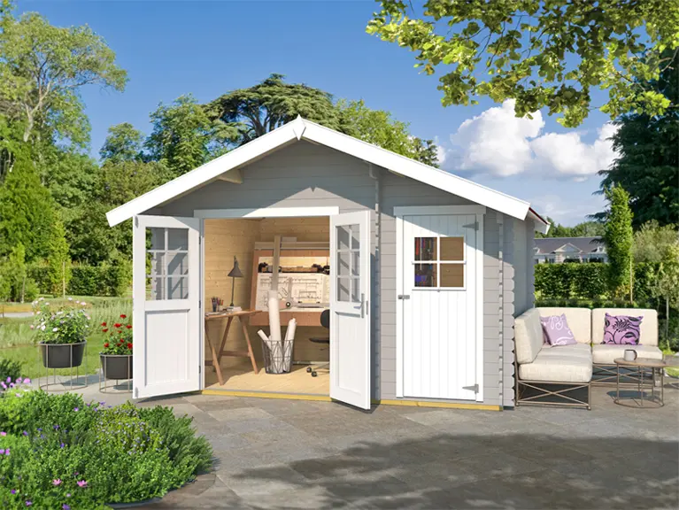 Mit einem Gartenhaus mit zwei getrennten Räumen kannst du einen Bereich als Gerätehaus oder Lagerraum nutzen, während der andere zu deinem persönlichen Rückzugsort wird.