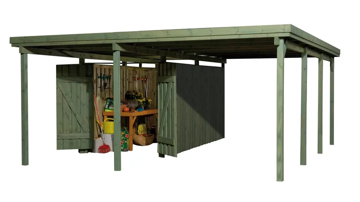 Unter dem Carport Filip Flex mit integriertem Geräteraum steht dein Auto nicht nur geschützt und trocken, sondern auch dein Werkzeug ist stets sicher und griffbereit verstaut. Schnell sein lohnt sich, denn es sind nur noch zwei Muster verfügbar!
