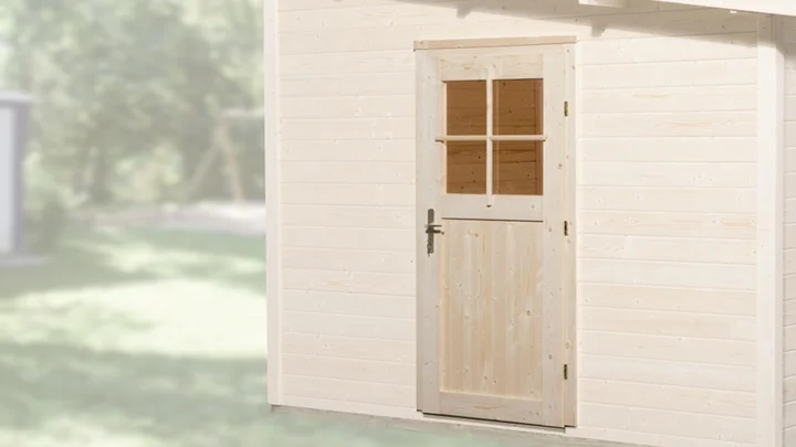 Mit der hochwertigen Einzeltür mit Lichtausschnitt gestaltest du dein Gartenhaus noch einladender. Sie ist perfekt für Gartenhäuser mit 45 mm Wandstärke geeignet. Dank der enthaltenen Drückergarnitur und des Profilzylinderschlosses mit drei Schlüsseln bist du rundum ausgestattet.