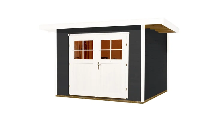 Das moderne weka Gartenhaus Blackmount 179 mit Flachdach setzt in deinem Garten stilvolle optische Akzente. Es bietet ausreichend Platz zum Arbeiten und Verstauen deiner Gartenutensilien wie Rasenmäher, Grabegabel, Werkzeugkiste und mehr. Bei Bedarf kannst du Blackmount 179 auch mit einem luftigen Anbau erwerben, um Kaminholz zu lagern oder Fahrräder geschützt abzustellen.