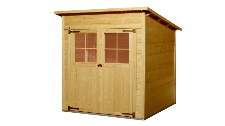 Das weka Gartenhaus Blackmount 325 mit Pultdach ist ein kompaktes Gerätehaus für deinen Garten oder dein Grundstück. Hier kannst du Gartenmöbel, Sonnenschirm, Grill oder Kinderschubkarre trocken und sicher unterbringen. Die Lichtausschnitte in der Tür sorgen für eine freundliche, helle Atmosphäre.