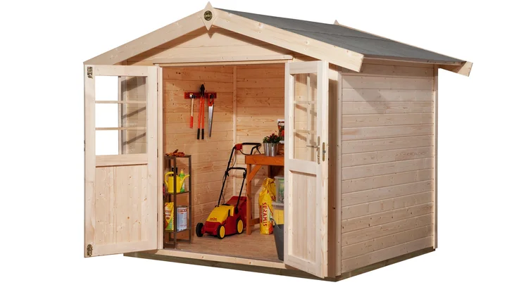 Im Gartenhaus Finn finden deine Gartengeräte einen sicheren Platz. Dank der massiven Doppeltür sind Schubkarre, Rasenmäher und vieles mehr im Handumdrehen verstaut. Das praktische Gerätehaus aus hochwertigem Massivholz macht deinen Garten komplett. Achtung, dieses Modell ist ein Auslaufartikel – schnell sein lohnt sich!