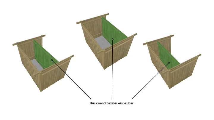 Das weka Lagerhaus 607 bietet dir jede Menge Flexibilität. Du kannst entscheiden, ob du Stauraum mit Trennwand, Seiten- und Rückwand oder luftig und offen für schnellen Zugriff benötigst. In diesem Flachdachschuppen kannst du neben deinem Rasentraktor, Mülltonnen, Brennholz und Werkzeugen noch vieles mehr lagern.