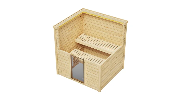 Die weka Massivholzsauna Bergen in Premium-Qualität lässt die Herzen von Saunafans höherschlagen. Wähle aus drei hochwertigen Saunaöfen genau den aus, der zu dir passt. Dank der stabilen Liegen auf unterschiedlichen Höhen kannst du die Wärme individuell genießen – so, wie es dir guttut.