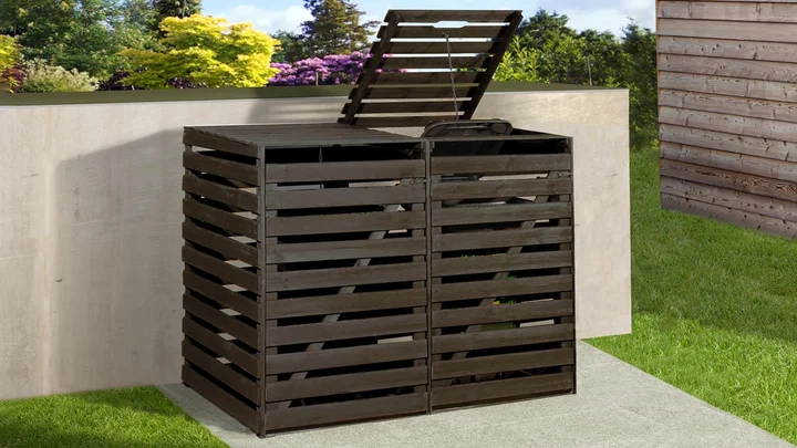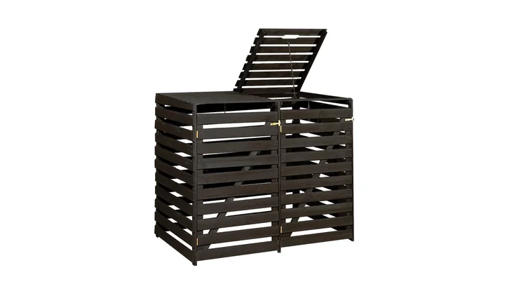 In der praktischen und stabilen weka Mülltonnenbox 196 verstaust du deine Mülltonnen direkt neben der Hofeinfahrt. Die Türen erleichtern das Verräumen der Tonnen – egal ob sie leer oder voll sind. Der aufklappbare Deckel ermöglicht dir außerdem das bequeme Befüllen. Die Box bietet Platz für zwei Tonnen und schafft Ordnung mit System.