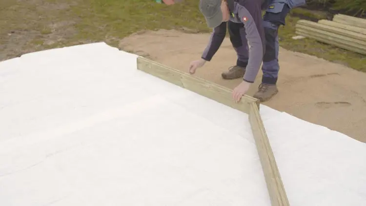 Anschließend beginnst du damit, die ersten Wandbohlen kranzförmig auf dem Vlies zu positionieren.