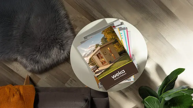 Tauche ein in die weka Produktvielfalt: Gartenhaus, Pool, Carport, Sauna, Gartenspielgeräte und mehr findest du in unseren Katalogen.