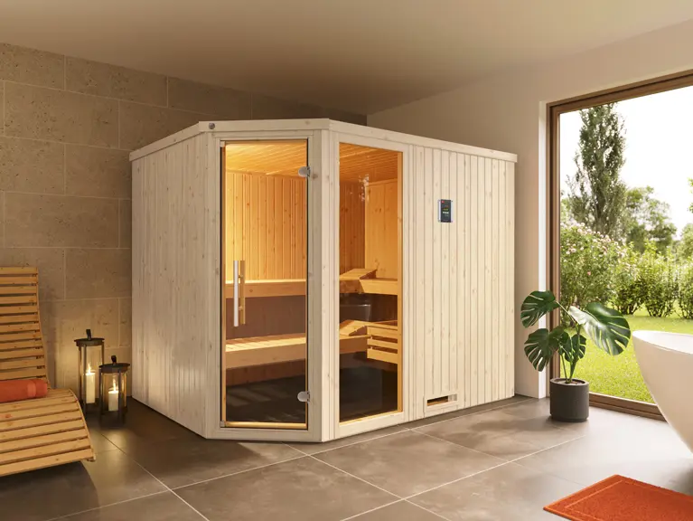 Die Isolierung in den Wand- und Deckenelementen sorgt außerdem dafür, dass dein Saunagang zudem noch energiesparend ist – gut für die Umwelt und den Geldbeutel.