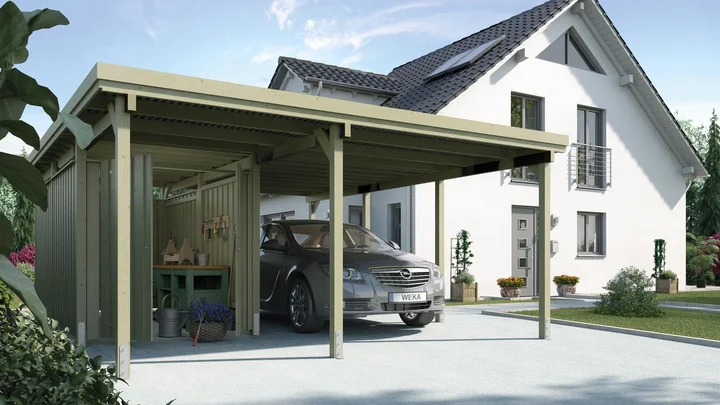 Aus einer Idee wird dein Carport: Konfiguriere deinen Wunsch-Carport, der zu deinem Haus und deinem Alltag passt – mit Seiten- und Rückwänden, Geräteraum und weiterem Zubehör.