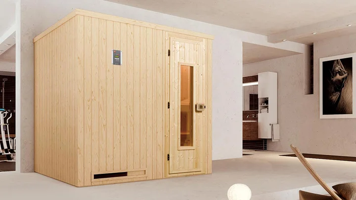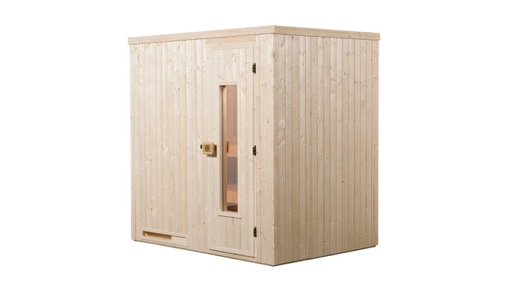 Mit der weka Elementsauna Halmstad kannst du dir den Traum einer eigenen Ruheoase erfüllen. Sie benötigt wenig Platz und ist hervorragend für kleine Räume geeignet. Optional kannst du zwischen einer Holztür und einer Glastür wählen und dich für den Saunaofen entscheiden, der am besten zu deinen Vorlieben beim Saunieren passt.