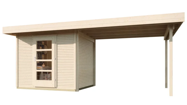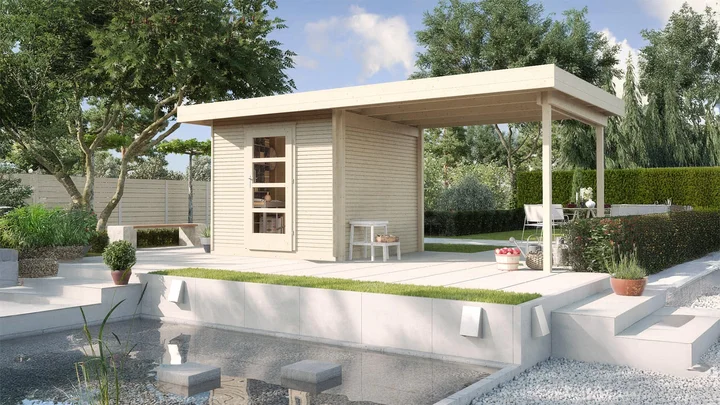 Das Gartenhaus Kingston wekaLine 172 zeigt sich in modernem, wohnlichem Design. Lass die Seele baumeln und genieße deine kleine Auszeit vom Alltag mit diesem exklusiven Gartenhaus. Optional kannst du dieses Haus mit Anbau kaufen und eine kleine Loungeecke einrichten.