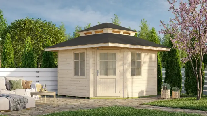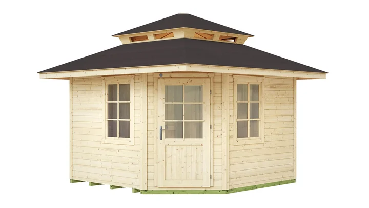 Das quadratische weka Gartenhaus Waroona 149 ist die ideale Ecklösung für deinen Garten. Die platzsparende Rahmentür und der markante Dachaufsatz verleihen diesem Haus seinen unverwechselbaren Charakter und ziehen alle Blicke auf sich. Dieses Modell ist auch ohne Dachaufsatz erhältlich.