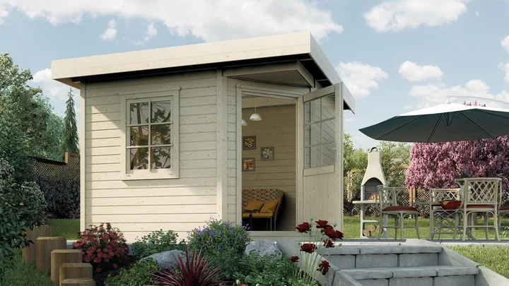 Gestalte deinen Garten mit dem weka Gartenhaus Winton 213 ganz nach deinen Wünschen. Ob Stauraum für Möbel oder als Rückzugsort für gemütliche Stunden – dank des optionalen Anbaus und der extrahohen Tür genießt du mehr Platz, Komfort und Flexibilität.