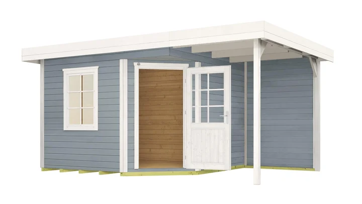 Gestalte deinen Garten mit dem weka Gartenhaus Winton 213 ganz nach deinen Wünschen. Ob Stauraum für Möbel oder als Rückzugsort für gemütliche Stunden – dank des optionalen Anbaus und der extrahohen Tür genießt du mehr Platz, Komfort und Flexibilität.
