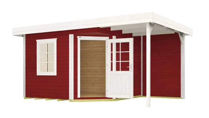 Gestalte deinen Garten mit dem weka Gartenhaus Winton 213 ganz nach deinen Wünschen. Ob Stauraum für Möbel oder als Rückzugsort für gemütliche Stunden – dank des optionalen Anbaus und der extrahohen Tür genießt du mehr Platz, Komfort und Flexibilität.
