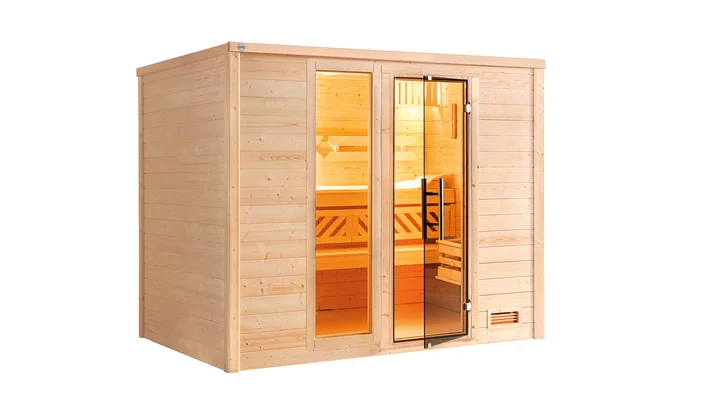 Die weka Massivholzsauna Bergen in Premium-Qualität lässt die Herzen von Saunafans höherschlagen. Wähle aus drei hochwertigen Saunaöfen genau den aus, der zu dir passt. Dank der stabilen Liegen auf unterschiedlichen Höhen kannst du die Wärme individuell genießen – so, wie es dir guttut.